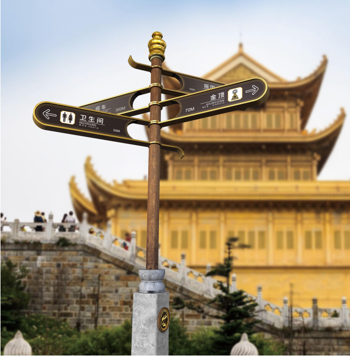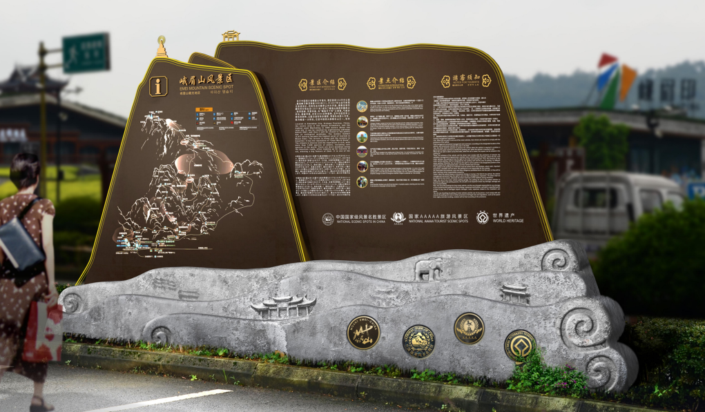 简化信息表达:避免大段文字堆砌,多用图标、符号替代文字,即使是语言不通的游客,也能轻松理解;同时,文字需选择清晰易读的字体,字号根据观看距离调整,确保远距离也能看清。