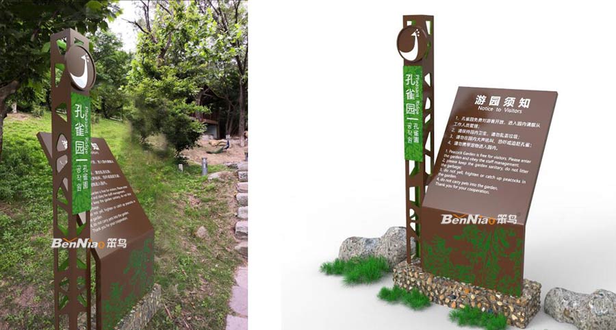 此类公园标识牌包括公园中的树木名牌、景区说明、公园标识牌管理等。