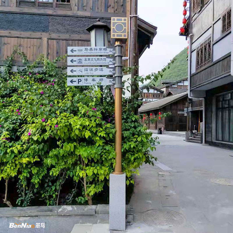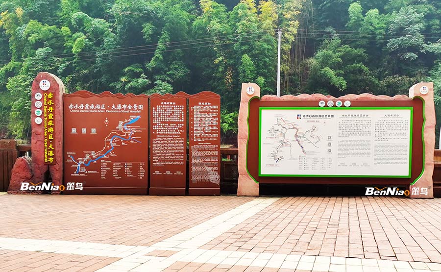 旅游景区标识标牌规划设计应遵循自然、生态、结合景区实践的天然面貌,天然资源为根底,把景观生态学原理导入规划中,使景区导视与景区的风格一致,做到为景区添景不抢景。笨鸟文旅会根据您景区的风格制定方案,然后再定制生产。