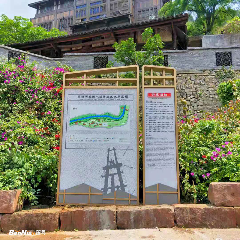 2、景区介绍牌:也称景点介绍牌,它向游客展现的是景点、景色的有关由来,让游客可以更片面的了解地方名胜的事迹,了解该景区景点的历史,让游客快速的了解该景区的特征特点,让游客在游玩的进程中有更好的体验。