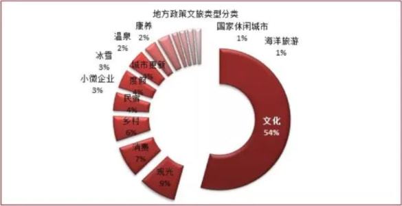 地方政策导向,落实金融扶持政策,乡村文旅成地方发布热点行业领域。54%的政策都与文化产业相关,其次发展观光、消费以及乡村类文旅产业也是地方政策关注的热点。