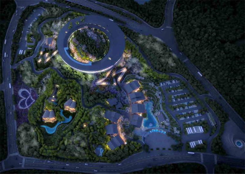 大观原点总占地面积约200亩,总建筑面积2.4万平方米。项目拥有游客中心、商业街、“十二金钗”主题游园、低奢酒店等多个功能区,集游客集散、餐饮、住宿、购物、体验、娱乐、观光为一体。