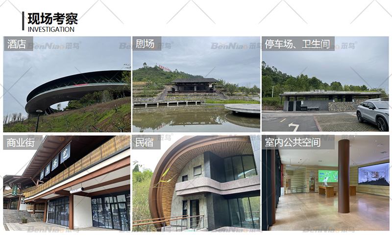 笨鸟文旅通过实地的调研和考察,对大观原点的历史文化和发展现状进行梳理,总结出区域内的人文符号,并加以运用;归纳大观原点建筑、自然环境为导视系统设计的材料选择提供更多的可能;分析大观原点内部的道路,区分主干道、次干道、小道,对元素的梳理和导视设立有一定的帮助。