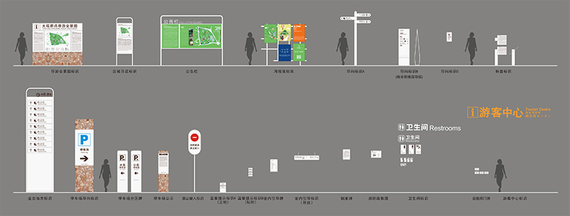 乡村导视系统作为区域内重要的引导性公共设施,彰显整个区域的便捷路线是关键,同时也具有提升区域内品质、彰显乡村文化特色、区域人性化设计的重要作用。基于此南川大观.原点导视系统不能单纯以一、二、三级普遍的导视系统分级分类,更要具体分为全景图、导览图、引导介绍牌等。根据实地调研地理位置偏远还需要公路旁亦需要导视牌进行导览和指引,通过一系列的标识信息分布,做到标识布点的合理性。