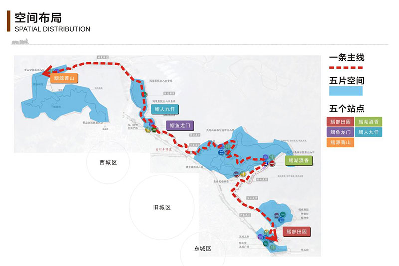 此项目在旅居习水的总体发展目标框架下,统筹考虑习水县城及周边各区域的联动发展,突出小火车核心引擎的带动作用以及空间辐射结构。串联多个的旅游组团,联动新老两个城区, 撬动旅居习水建设。