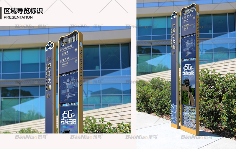 在城市都有着不同的标识标牌系统,其目的就是方便用户们更快的知道行驶路线,也能够增加游玩的乐趣。在为云阳县城区规划设计标识牌前笨鸟文旅团队去了现场勘察,对周边环境进行对比,把标识标牌和环境融合在一起,也根据不同的区域规划设计了动线规划来设立标识标牌,设立的标识标牌位置要醒目、造型颜色统一、尺寸大小符合国家规范的标识标牌,便于人们识别。