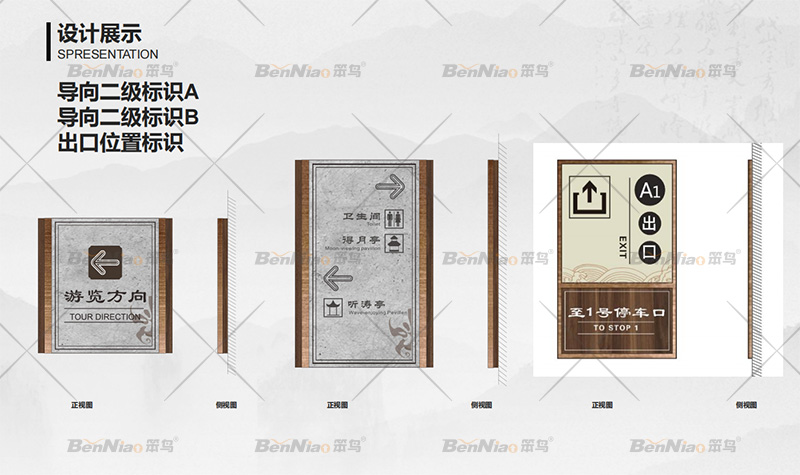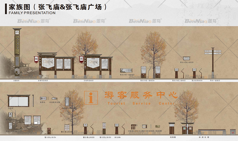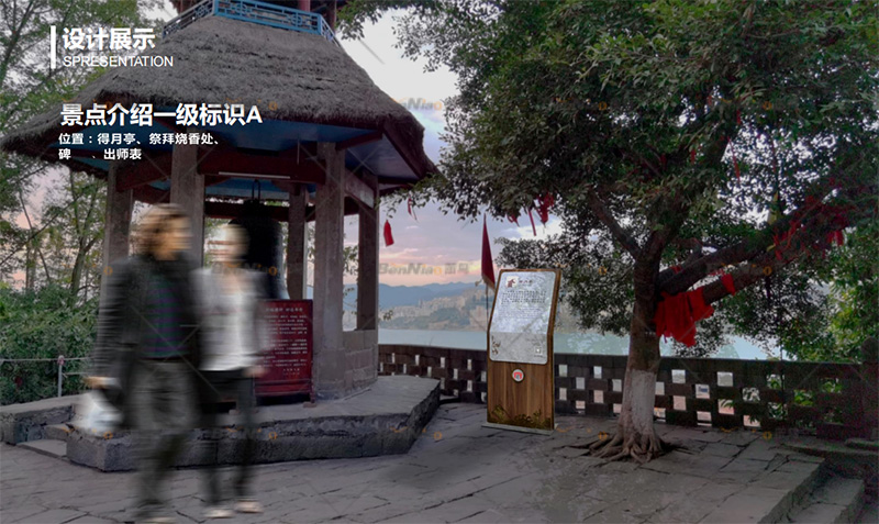 通过前期对云阳张飞庙景区的实地勘察,在设计导视系统时我们首先考虑到了它的文化属性,其次是云阳景区导视系统进行分类,按照功能性来分设计了主题标识、区域导览标识、景点介绍一级二级标识、景区导向标识一级二级等标识且确定了景区各类标识的数量,这对我们整个景区的导视系统有个整体的把控。最后在文件深化时我们的设计师又充分考虑到整个景区导视系统的造型、色彩、尺度、预埋方式以及内容规范性等因素。做到云阳张飞庙旅游景区的导视系统有其独特性,这种独特性是完全属于它所在的旅游景区并融入景区环境中。