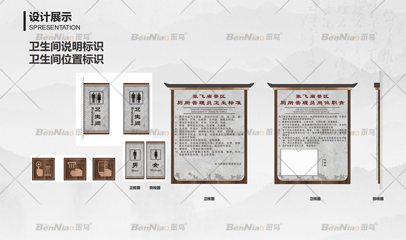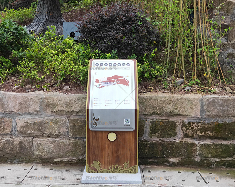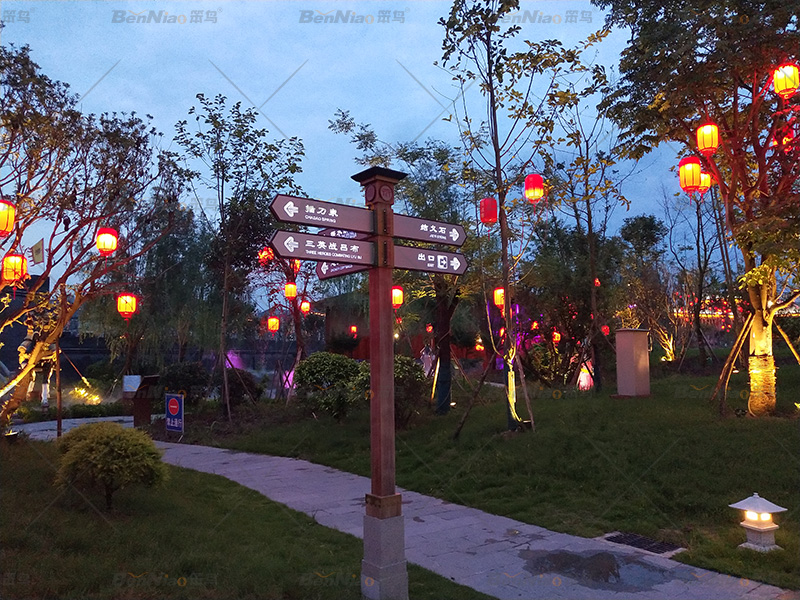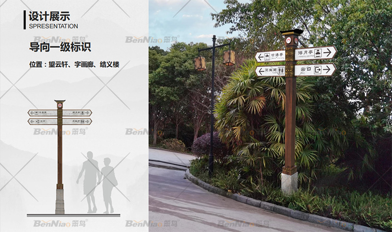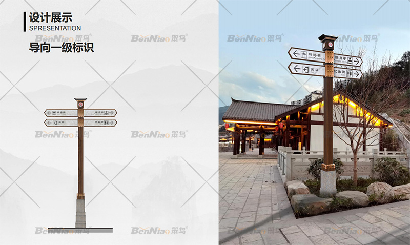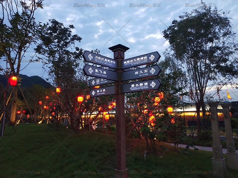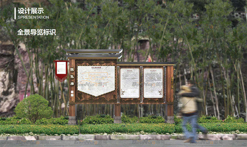 项目设计:笨鸟团队在云阳张飞庙景区导视系统提升工作中,通过前期实地的调研把张飞庙景区和商业街区作为主要的提升范围,我们以最大程度维护张飞庙古街和建筑的传统风貌、标识融入环境,维护当地的空间肌理气尺度格局。保存其历史文化、文化信息符号对景区环境品质进行提升。