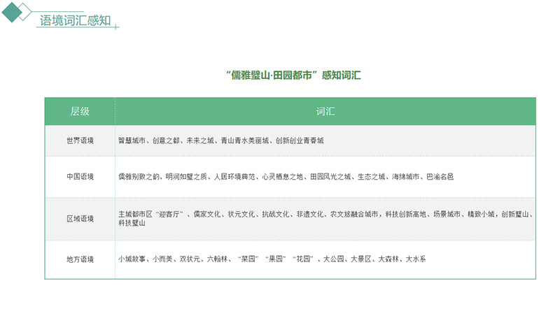 在该课题研究中,我们构建了璧山城市品牌形象的感知系统,基于对璧山文化渊源的梳理,课题组提出:把“珠联璧合·心灵璧山”作为城市品牌形象感知主题,用突显田园内涵人文品味的“心灵家园”和“一切智慧皆消融于美”作为“儒雅璧山·田园都市”城市品牌形象发展的哲学与美学基石,提出了语境词汇感知、城市风格感知、城市IP感知、城市地标感知、城市景观感知、特色活动感知、城市行为感知等的对应措施。