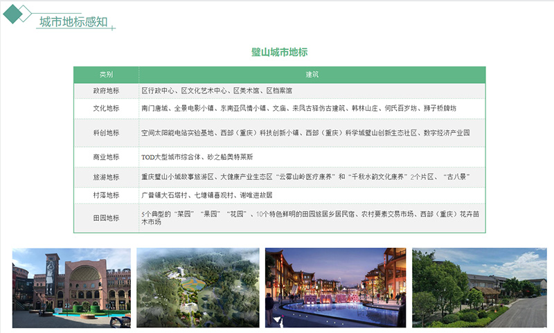 地标反映城市在人们心目中的形象,是人们对一座城市的第一视觉、第一印象和第一记忆。璧山需孵化占领人们心智的超级入口,做优做美一批城市地标。