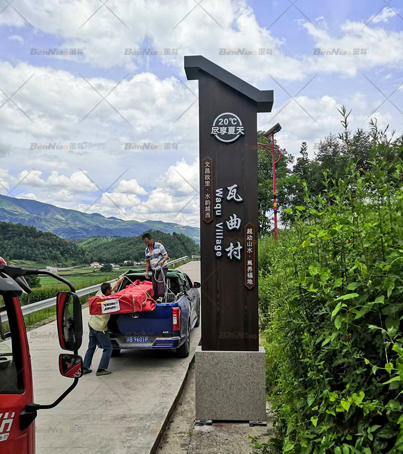 笨鸟文旅为瓦曲村设计的村名称标识牌(落地图)