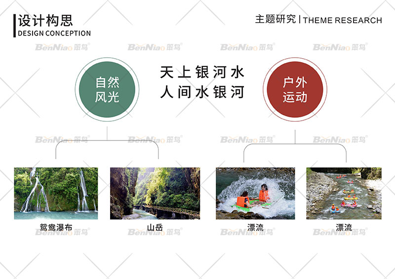 笨鸟文旅为助力水银河景区创AAAA,从景区导视着手,在整体标识导视系统设计上,主要是依据自然风光、户外运动、山岳、漂流、峡谷等为设计构思,表达生态保护、融入环境的宗旨,充分体现自然、野趣、奥秘之特色。透过眼前的现象,借景相融呈现水银河大峡谷之美。