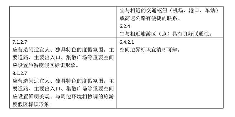 8.1.2.7 应营造闲适宜人、独具特色的度假氛围。主要道路、主要出入口、集散广场等重要空间应设置鲜明美观、与周边环境相协调的旅游度假区标识形象。