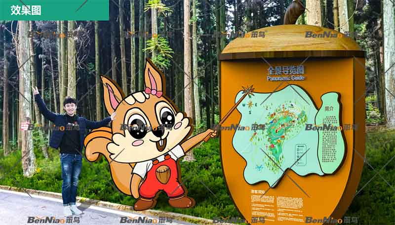信息类:为游客提供诸如名称、环境、导向、警告、时间、事件等各类信息的小品设施,如:导游图、指路牌等。
