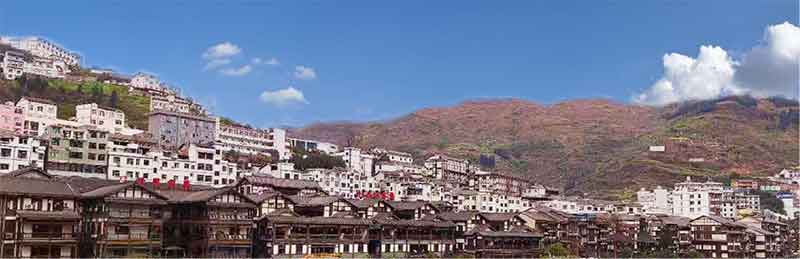 合马羊肉小镇景区位于贵州省遵义市仁怀市,是国家AAA级旅游景区,合马又名“罐子口”,因为下游几百米处的天堂庙,地形似罐子,而赤水河经此处好似从罐子口流出而得名。1944年,乡公所地址从共群公社的藿麻沟迁到罐子口,取“藿麻”谐音合马,一直沿用至今。