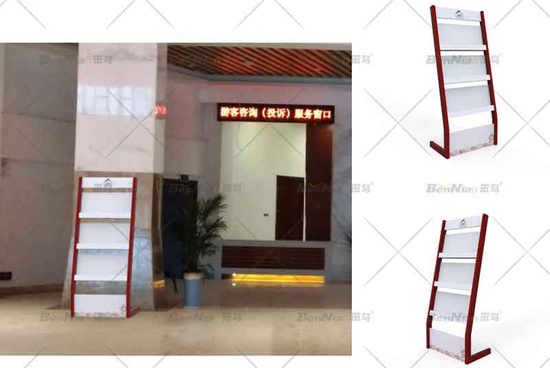 3、应设置资料展示台、架,展示景区形象的资料和具有地方特色的产品、纪念品、科普环保书籍,展示架所展示的资料应进行分类摆放,有明显的标志或文字。