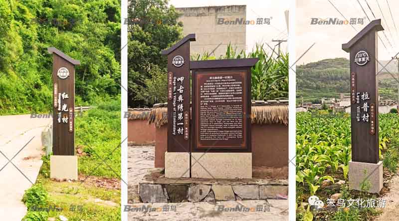 标识设计方面呢,村牌作为美丽乡村标识牌中最为重要的一环,对整个乡村都起着非常重要的作用。村牌作为一个村子的门脸,精妙的设计既能明显的展示村名,也可以有效的向他人宣传该村的特色文化与人民的精神面貌,对宣传美丽乡村非常重要。导向标识也能能够给予客户、游客极大的便利,同时也是村落风格的展现。