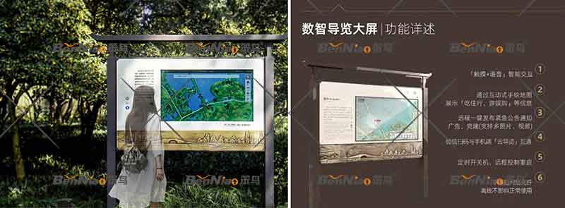 数智化导视系统通过新媒体技术、智能化技术、信息化技术的应用,为游客提供即时性的信息内容,和明确的方向指引,也便于景区管理者及时更新面板信息内容,在技术加持下,能实现智能标识和游客之间的互动,让游客在接触到信息的时候,通过触摸屏、蓝牙、网络等方式,体会到身临其境的感觉,而不是被人机械的灌输信息,且信息可以通过终端远程操控及时变更,用户每天都能通过标识牌接受新的信息,与时俱进,能适应景区日新月异的发展需求。