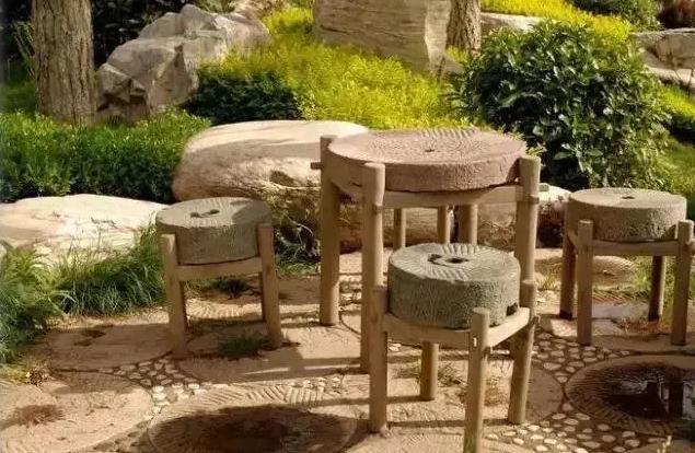 用石磨做成桌椅